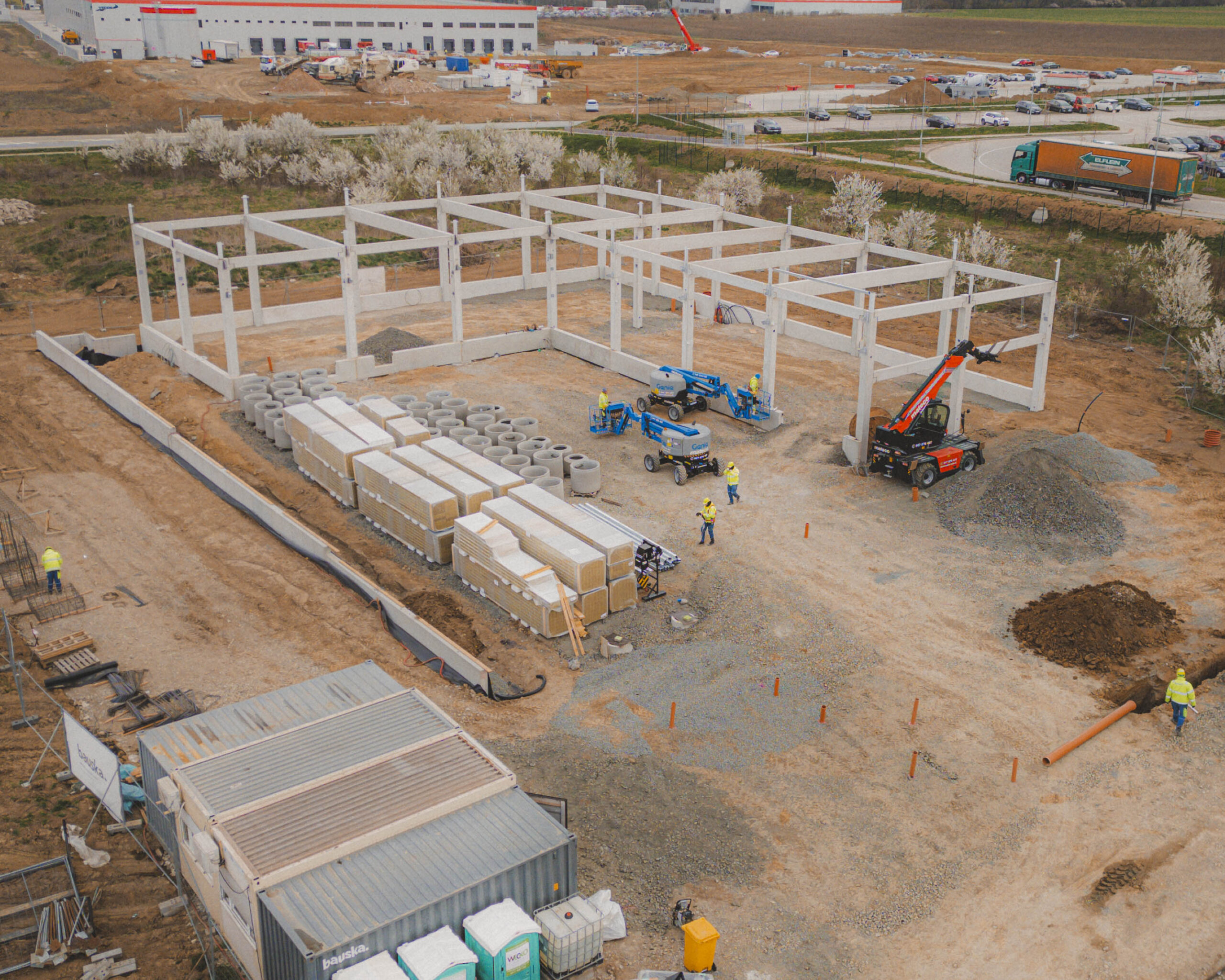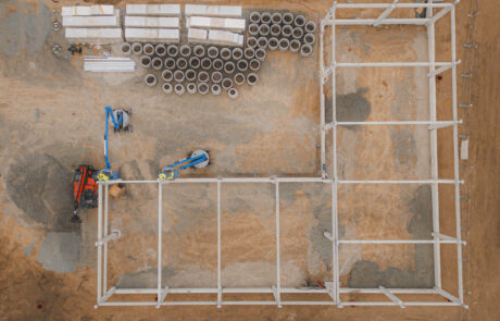 Construction is progressing at a rapid pace. After completing the earthworks, we proceeded with the assembly of the structural framework, which is gradually reaching a stage where the shape of the hall is clearly visible. Upon its completion, we will continue with the installation of the cladding.