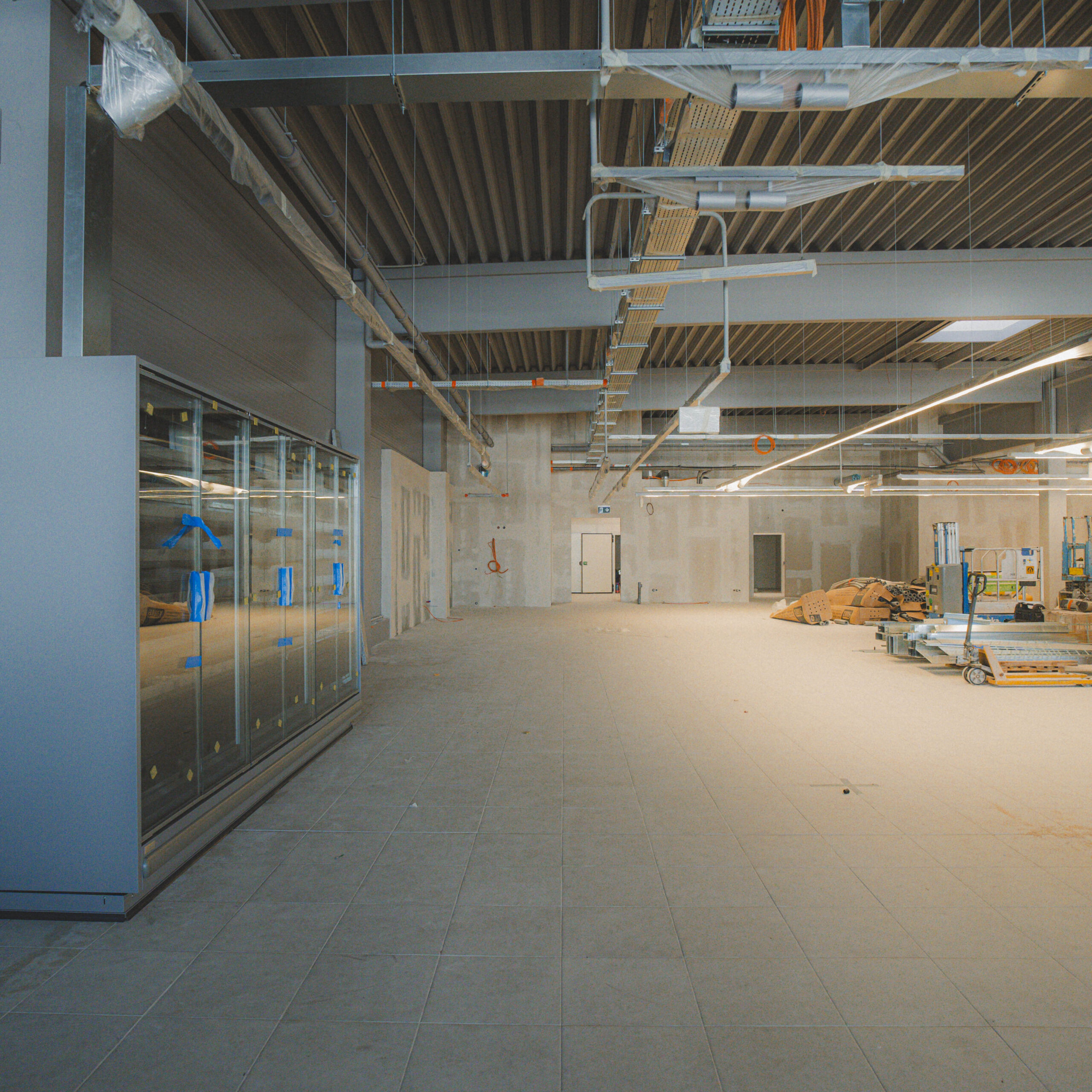 The building envelope of the new store has been successfully completed, including the installation of all windows and doors. This milestone allows us to move into the interior, where wall finishes, floor tiling, and all required technical installations are currently underway. The building is steadily taking shape, bringing us closer to completion with each next step.