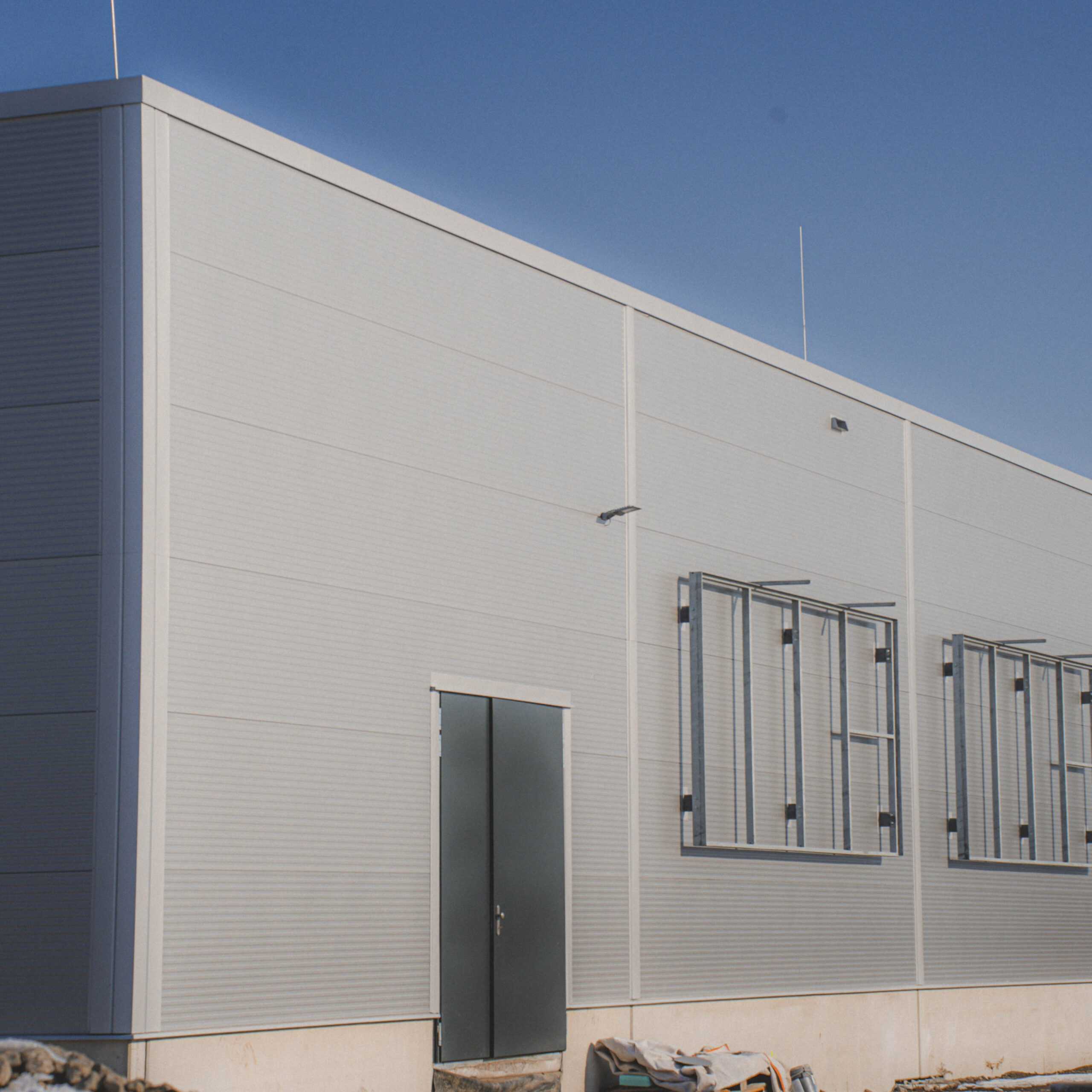 After completing the excavation works and the installation of the pile foundations, we proceeded with the assembly of the reinforced concrete load-bearing structure – the building skeleton. At the same time, the delivery and placement of insulation materials are underway. A structural trapezoidal sheet has been laid on the roof structure, forming the base for the subsequent layers of the roofing system.